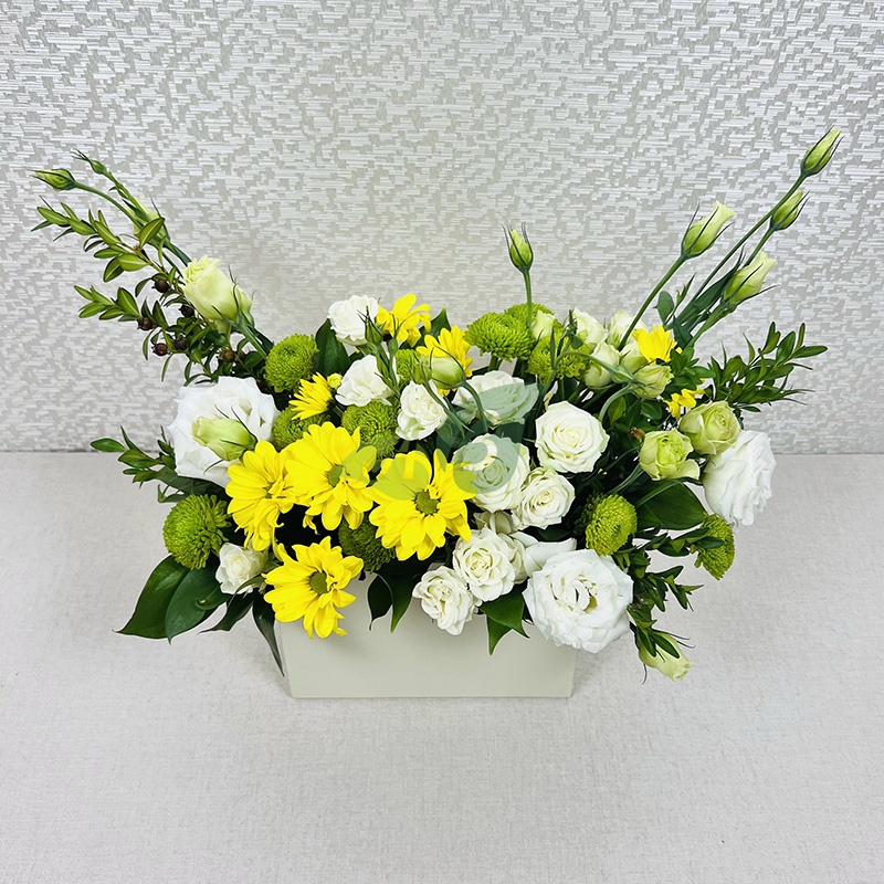 Хризантемы и эустома славятся своей стойкостью, поэтому этот букет будет радовать не один день и не огорчит осыпавшимися лепестками на следующее утро после доставки.